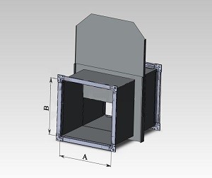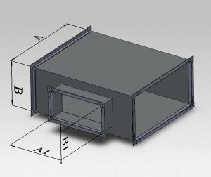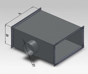 Прямоугольный тройник с фланцами и врезкой круглого сечения