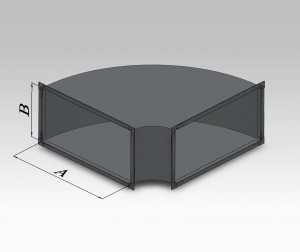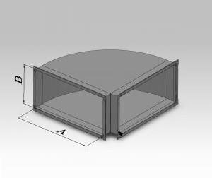 Прямоугольный отвод с фланцами и шейкой радиусом