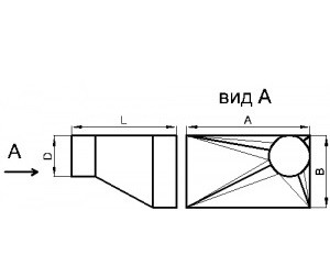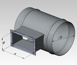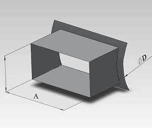 Тройник круглого сечения с врезкой прямоугольного сечения