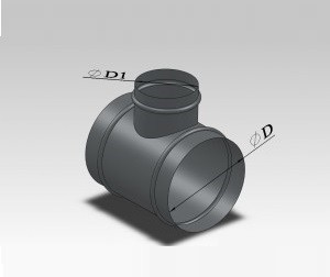 Круглый тройник с прямоугольной врезкой диаметром до 1250 мм